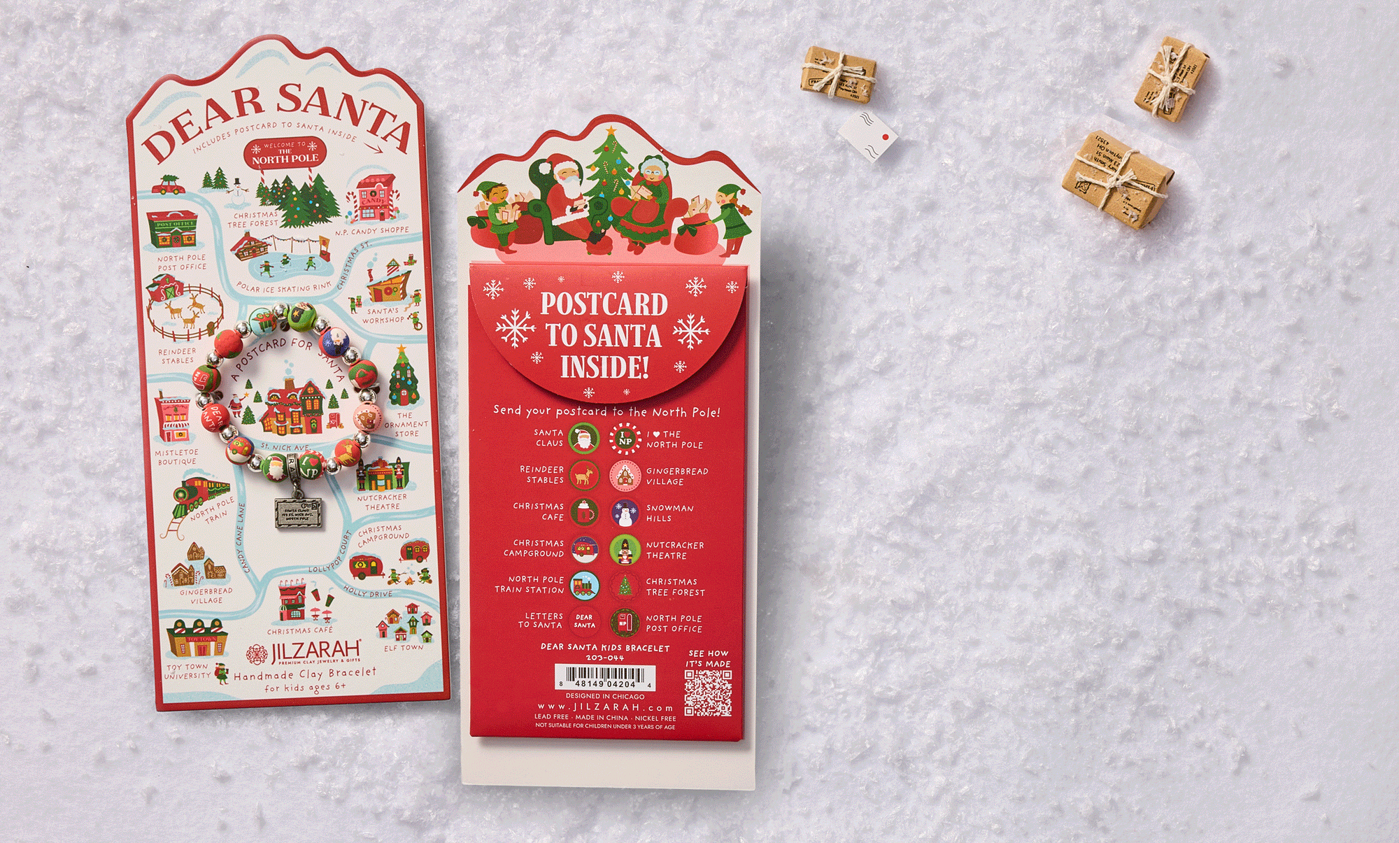 Each handmade clay bead celebrates a stop around the North Pole, turning their bracelet into a tiny holiday adventure!