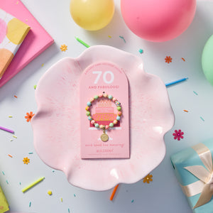 Seventy is a beautiful milestone—filled with seasoned joy, easy laughter, and a life well-loved. This celebratory bracelet is a gentle wink to every chapter she’s written and the sweet, unhurried moments still ahead. Tuck in a few heartfelt words to turn it into a keepsake she’ll reach for whenever she wants to feel celebrated.