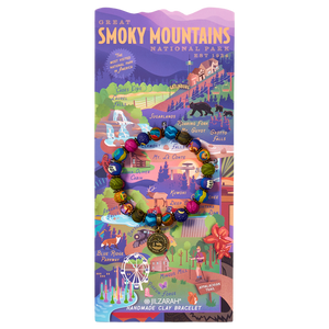 Capture the serene beauty of Great Smoky Mountains National Park with this beaded bracelet, featuring gentle hues of soft yellow, deep blue, and delicate lavender. Inspired by the misty peaks of the Great Smoky Mountains, this bracelet evokes the spirit of adventure, from stargazing at Newfound Gap to hiking through Cades Cove, where nature and wilderness unfold at every step.