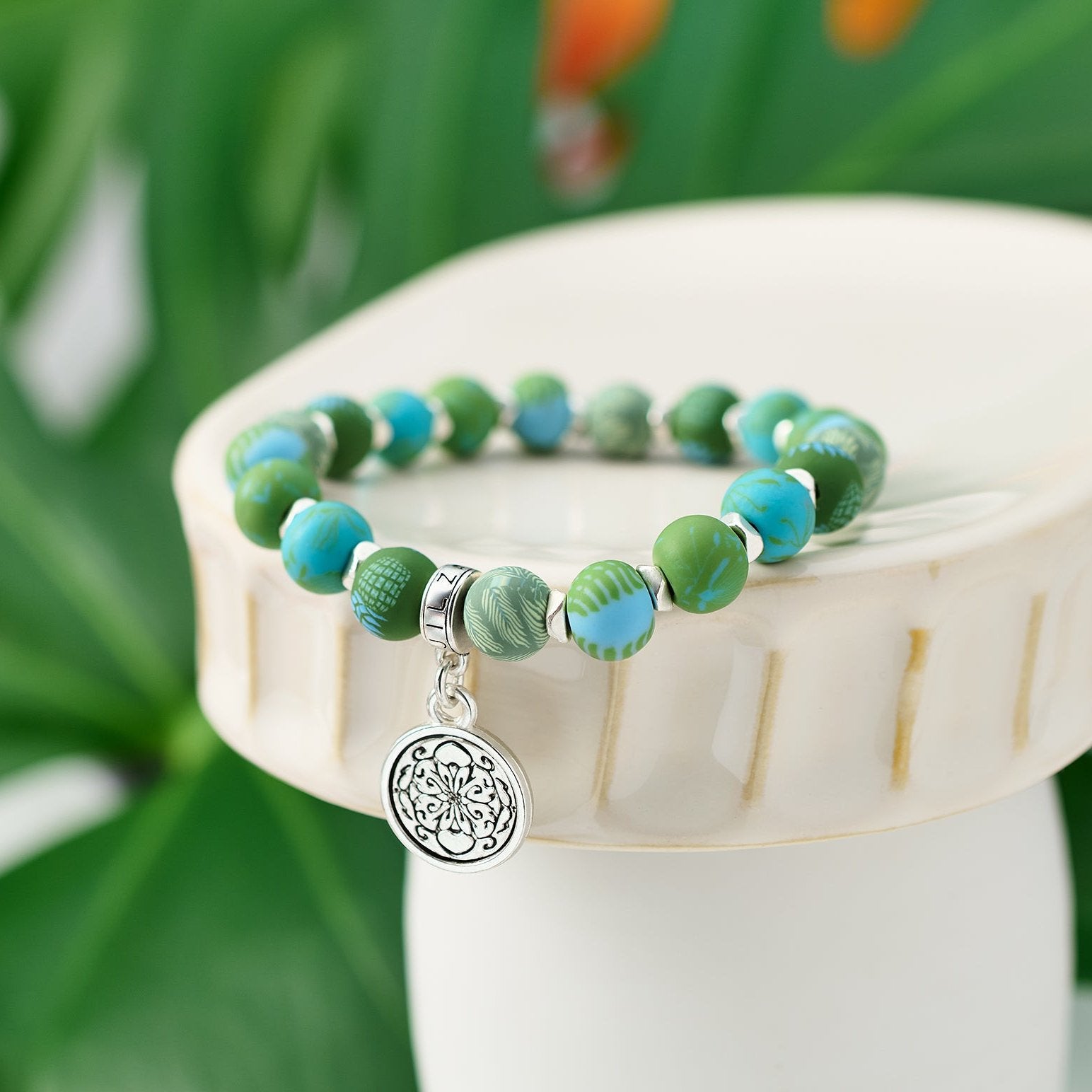 - Hand-crafted 8mm polymer clay beads
