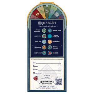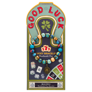 Stack the deck in your favor with a handmade bracelet of tiny talismans—Lucky Number 7s, ladybugs, the protective evil eye, goldfish, elephants, horseshoes, a lucky pig, four-leaf clovers, spades, and a shimmering “Good Fortune” bead. Deep burgundy, gleaming gold, and soft sage swirl together like a secret lucky streak you can wear every day. Each bead is a pocket-sized wish for wins, serendipity, and joyful surprises—aka Your Favorite Good Luck Charm!