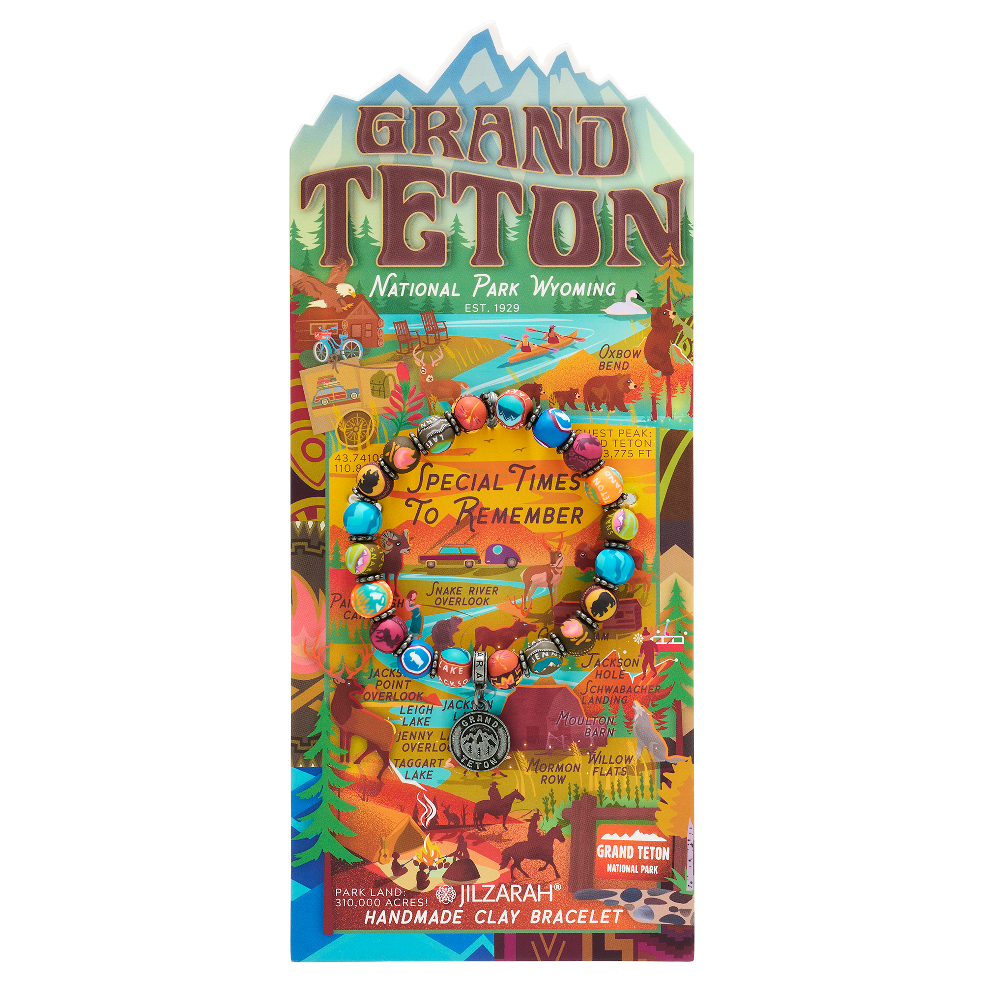 Embrace the rugged beauty of Grand Teton National Park with this nature-inspired beaded bracelet, featuring earthy red, vibrant forest green, and tranquil lake blue. Each bead reflects the wild landscapes of Grand Teton, from moose crossings to the serene Jenny Lake, capturing the essence of the Teton Mountain Range and the spirit of Wyoming’s untamed wilderness.