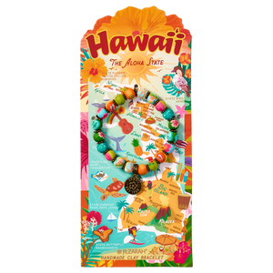 Capture the vibrant spirit of The Aloha State with this beautifully crafted beaded bracelet, featuring rich coral red, sunshine yellow, and soft palm green. Each bead embodies the tropical paradise of Hawaii, from the iconic hibiscus and floral lei to the serenity of palm trees, sea turtles, and endless beach days.