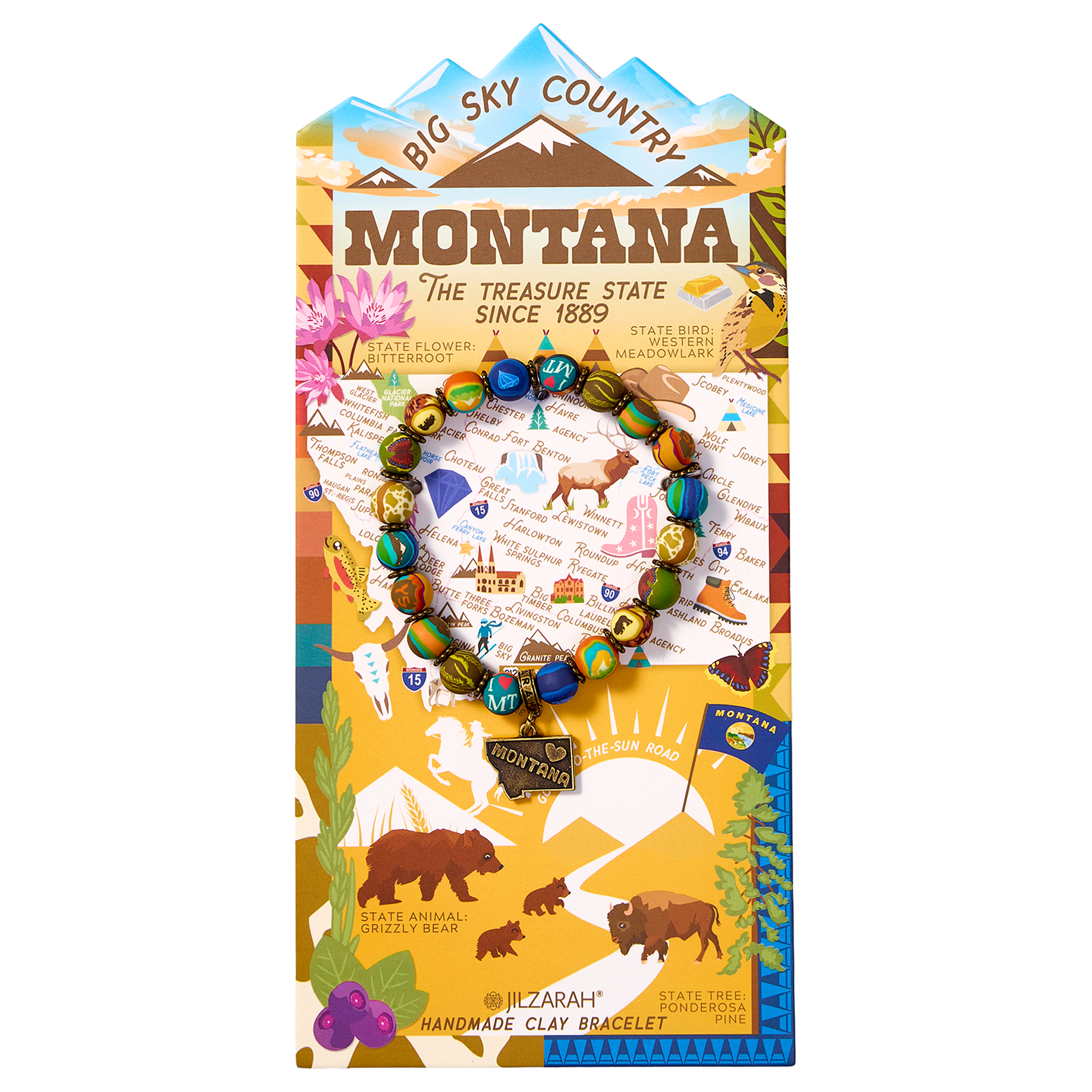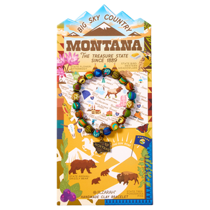 Inspired by The Treasure State, this beaded bracelet reflects Montana’s untamed beauty and rugged spirit. Deep sapphire blues pay homage to the state’s precious gemstone, while earthy greens capture the rolling wheat fields and vast ranchlands. Accents of rich teal evoke the sweeping skies over Glacier and Yellowstone National Parks, where grizzlies roam and adventure awaits.