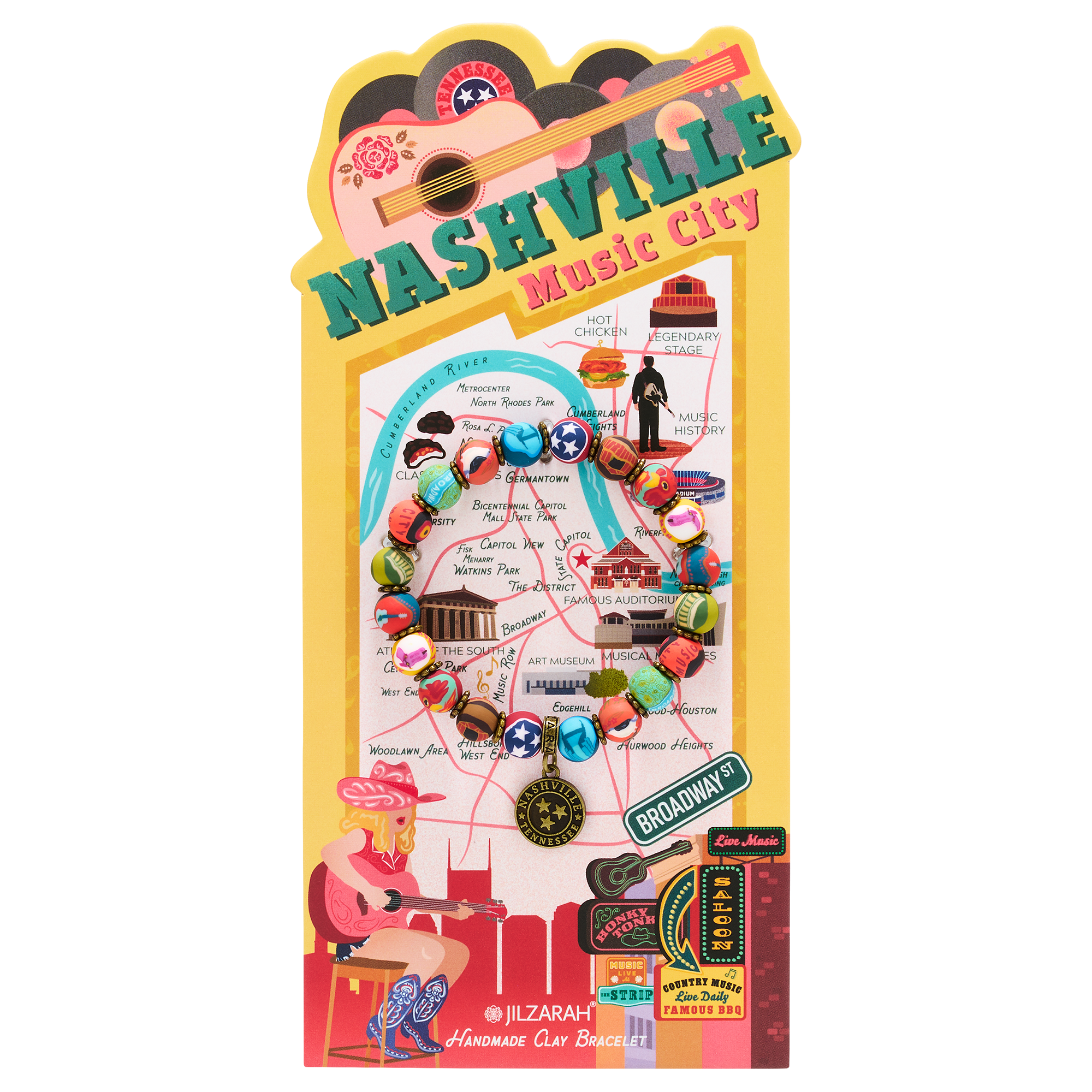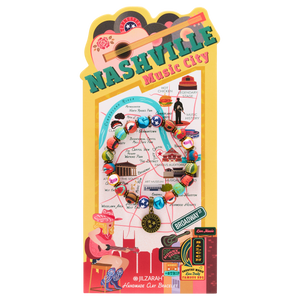 Celebrate the soul of Music City with this vibrant beaded bracelet, featuring deep green, rosy blush, and sunny yellow. Each bead captures Nashville's dynamic energy, from the honky-tonk rhythms of Broadway Street to the iconic guitar and city skyline, embodying the spirit of music, legend, and southern charm.