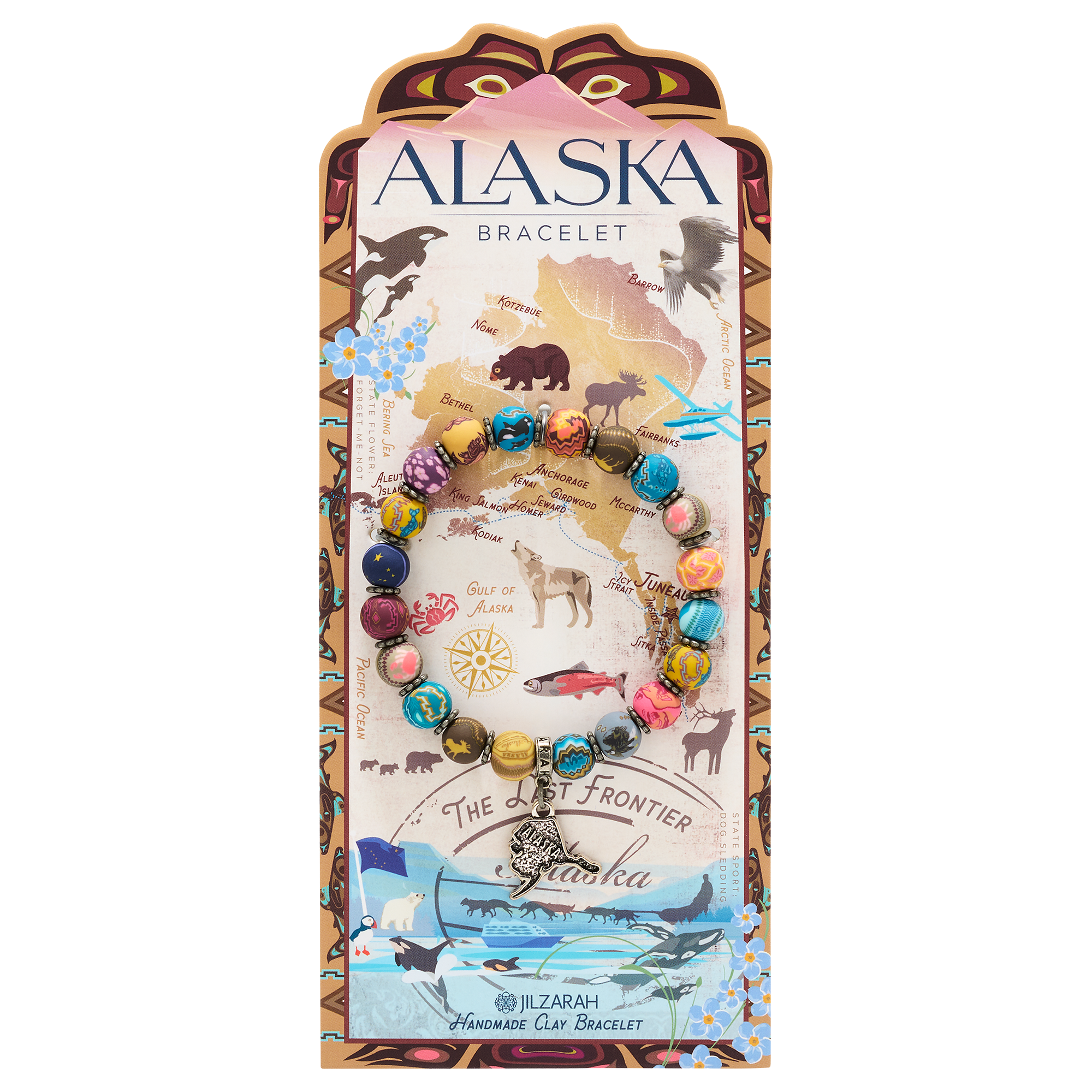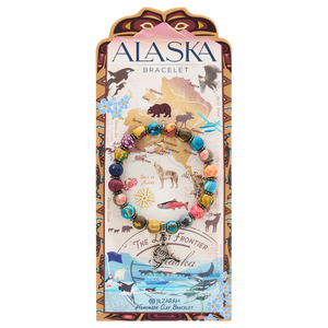 Embark on a journey through The Last Frontier with this exquisite beaded bracelet, where hues of deep glacier blue, rugged mountain brown, and shimmering aurora gold unite to celebrate Alaska’s untamed beauty. Each bead tells a story—from the spirit of dog sledding to the majesty of the bald eagle—capturing the essence of Alaska's wild heart and timeless artistry.