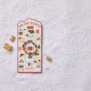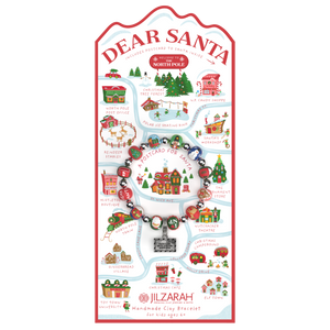 The Dear Santa bracelet is a festive journey around the North Pole! Each handmade clay bead celebrates Santa’s favorite stops and includes a special postcard to send your wishes straight to St. Nick Avenue.
