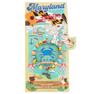 Celebrate the charm of The Old Line State with this beautifully crafted beaded bracelet, featuring cool slate blue, refreshing coastal teal, and soft sand yellow. Each bead reflects Maryland's natural beauty and rich heritage, from the vibrant Black-Eyed Susan to the serene Chesapeake Bay, capturing the spirit of its iconic landmarks, coastal life, and the lively heart of Baltimore.